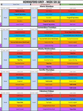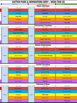 Multi Sports Camps Activity Time Tables